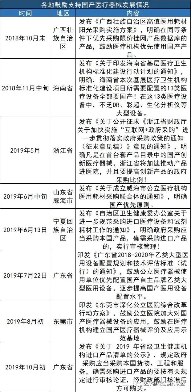 近幾年全國對于支持國產(chǎn)的呼聲達(dá)到了頂峰,作為長期被進(jìn)口品牌壟斷的醫(yī)療器械行業(yè),也成為了國家推進(jìn)國產(chǎn)產(chǎn)品的一個重點(diǎn)領(lǐng)域。各省在允許采購進(jìn)口醫(yī)療產(chǎn)品方面加大限制,在國產(chǎn)產(chǎn)品能夠達(dá)到同等要求的情況下,堅決優(yōu)先采購國產(chǎn)!